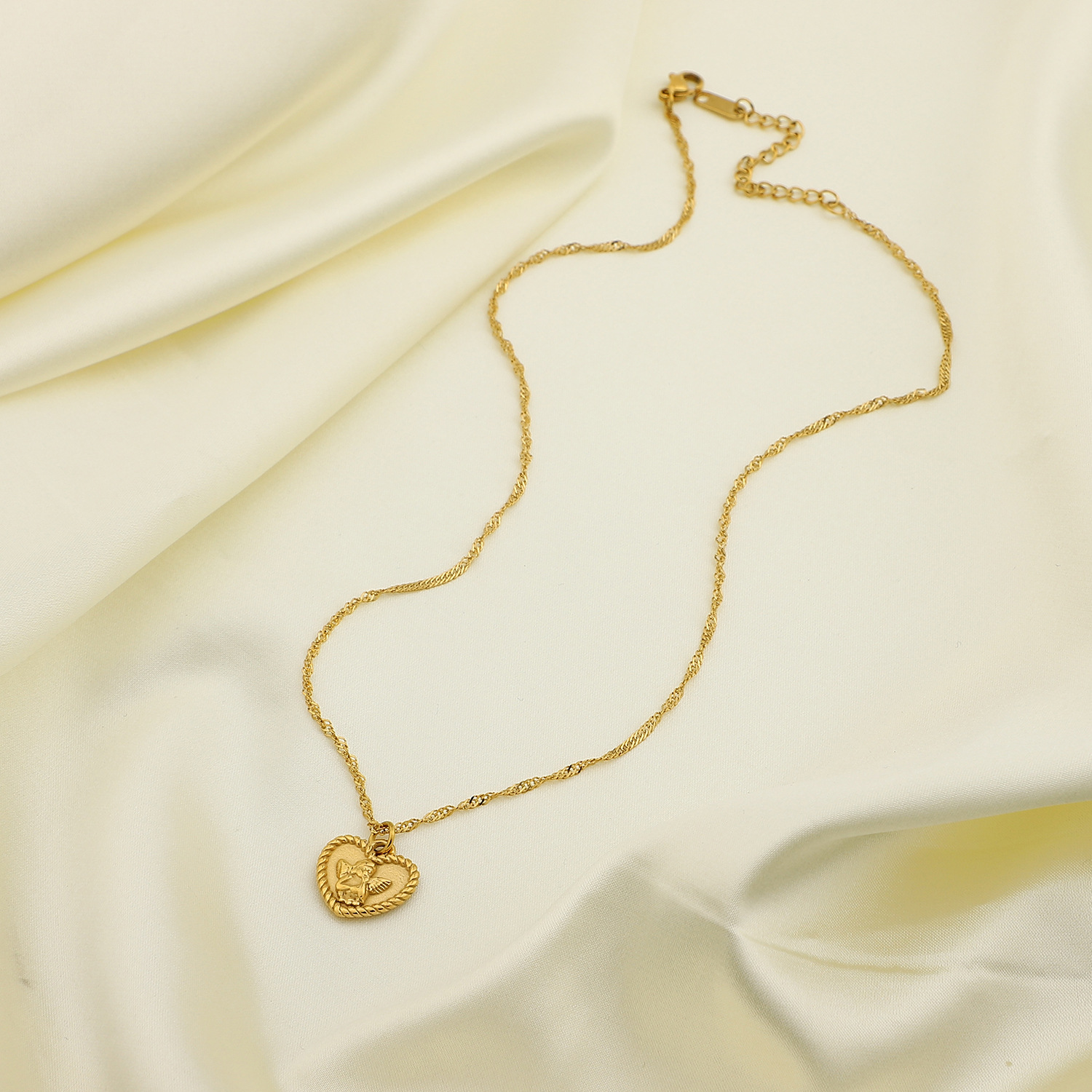 欧美简约丘比特浪漫天使吊坠项链18K真空电镀金不锈钢项饰项链