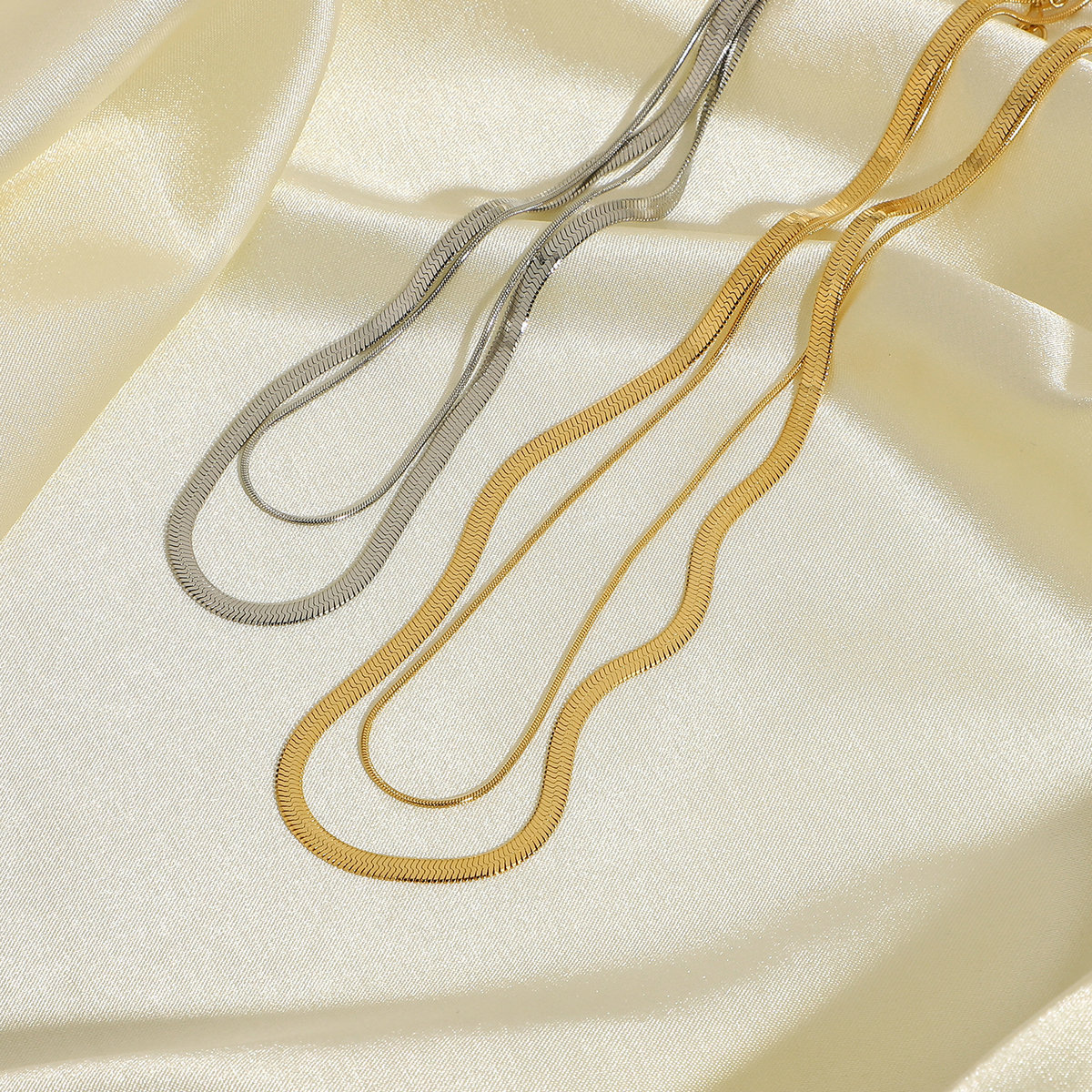 欧美网红同款项链 女士双层蛇链项链可叠放14K镀金不锈钢项圈项链