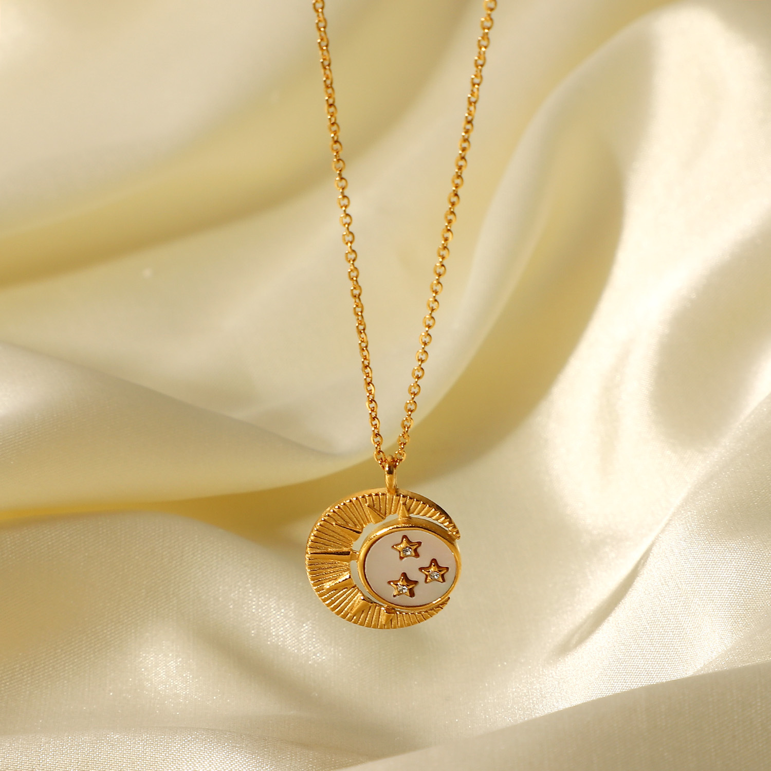 18K金不锈钢白贝镶嵌星星月亮太阳吊坠项链时尚INS风镶锆石项饰女