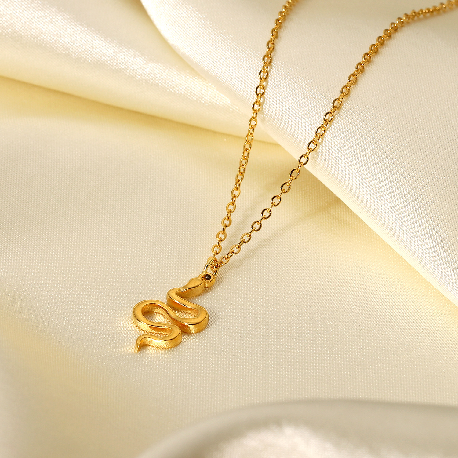 INS流行新款不锈钢链环蛇吊坠项链首饰18K镀金蛇吊坠项链饰品女式