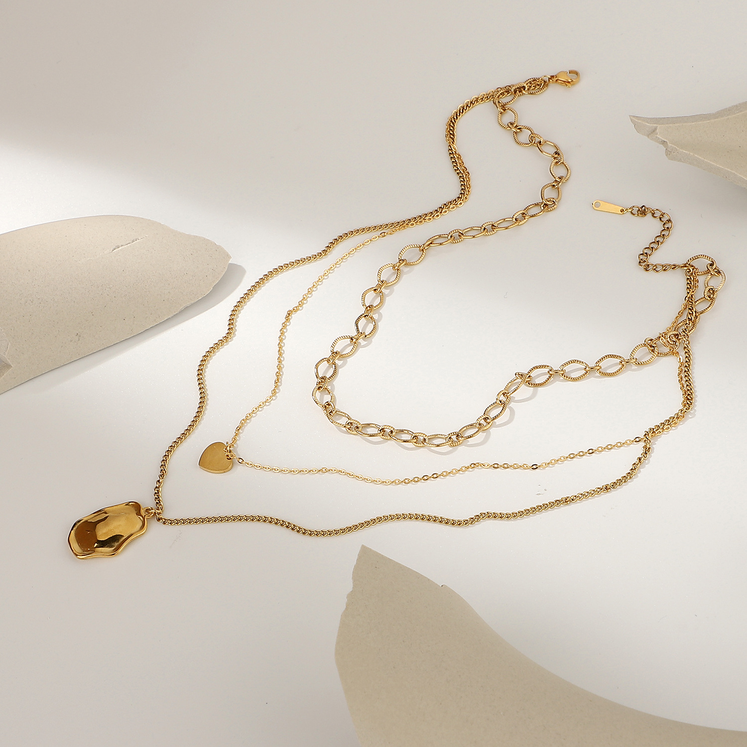欧美INS网红同款钛钢项链18K金三链合一不锈钢金属项链女士脖颈链
