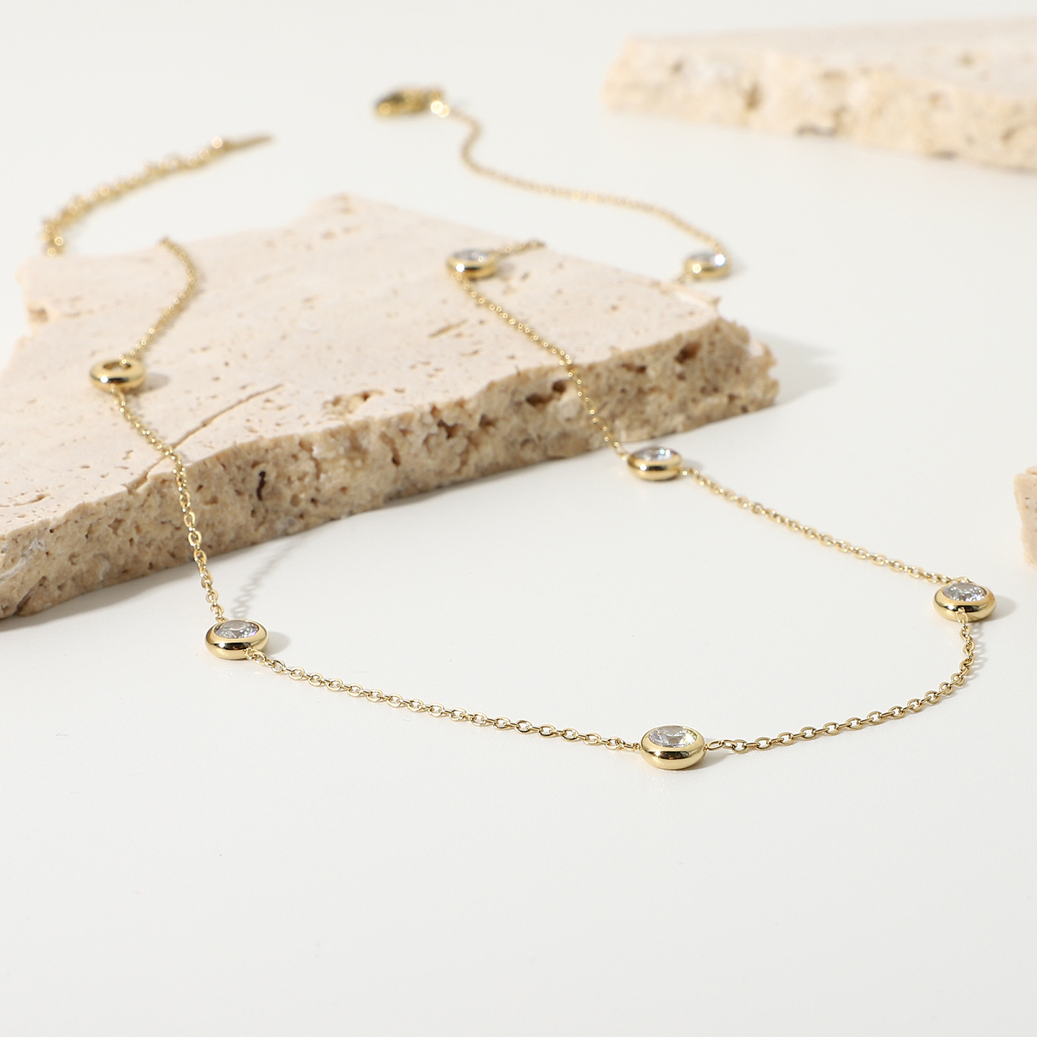 新款14K镀金不锈钢饰品配件钛钢金属锆石吊坠颈链INS网红首饰女士