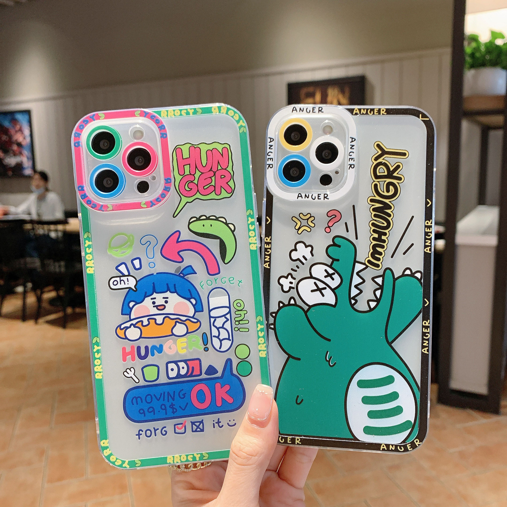 卡通可爱鳄鱼适用苹果11Pro手机壳镜头全包天使眼iPhone13XR软tpu