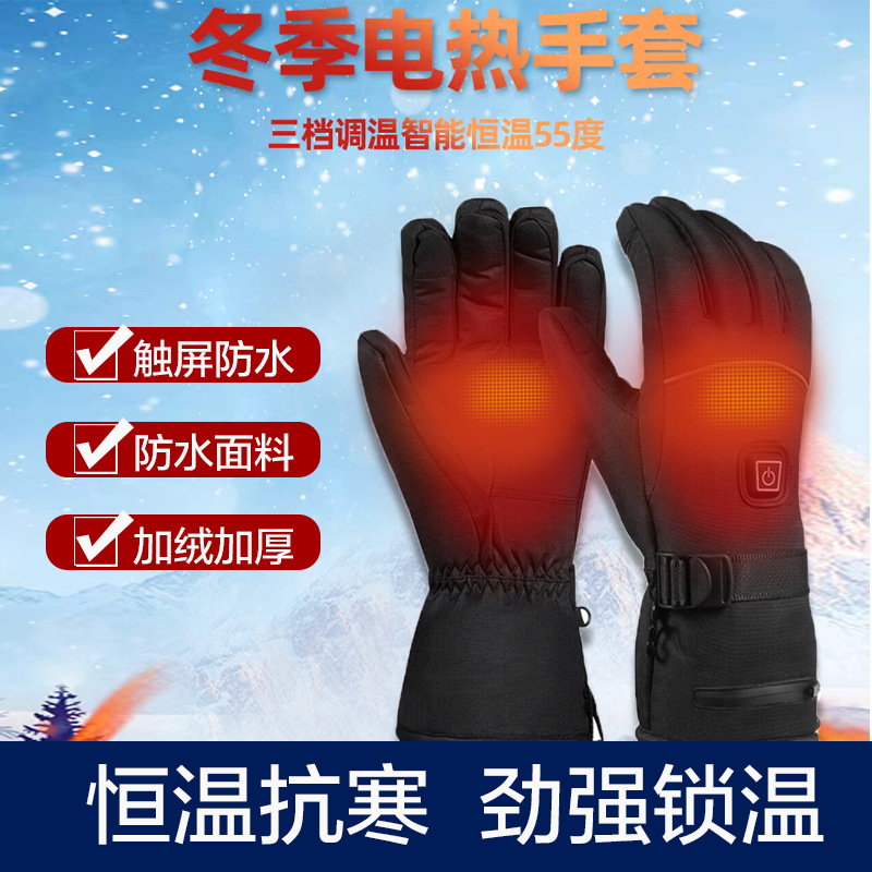 智能发热手套男女跨境三档调温冬季户外运动防寒保暧电热滑雪手套