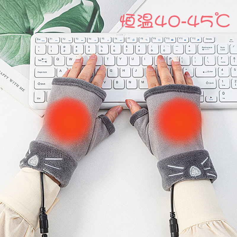新款USB充电加热手套男女成人冬季保暖卡通针织发热手套半指现货