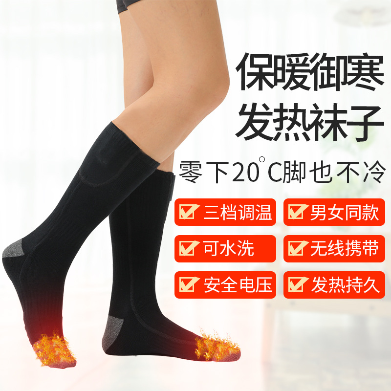跨境充电保暖袜发热男女士加热袜配可调温锂电池保暖电热加热袜子