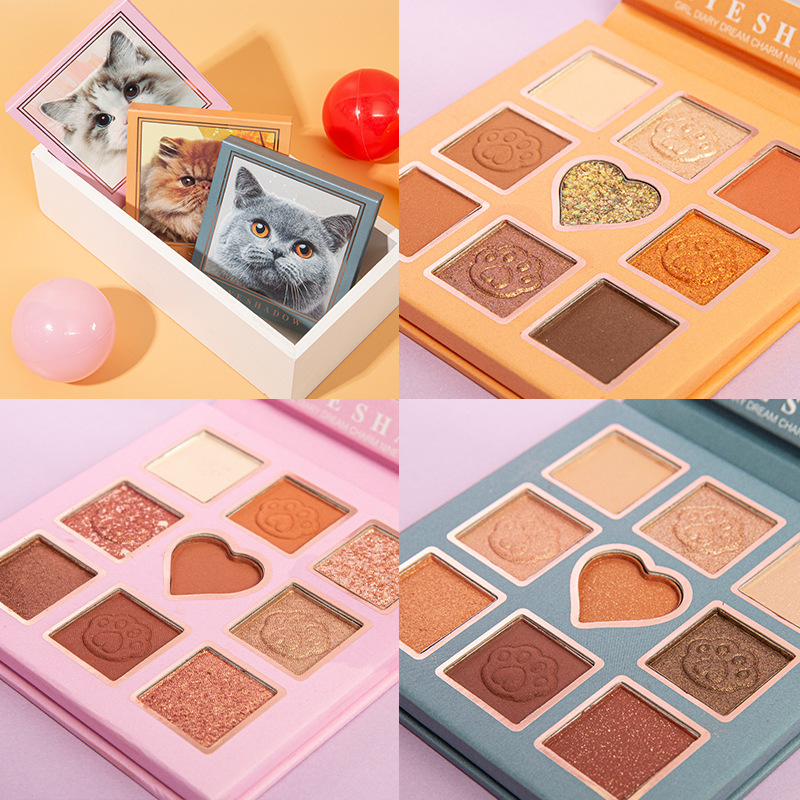 小猫咪9色哑光眼影盘珠光亮片细腻不飞粉少女系