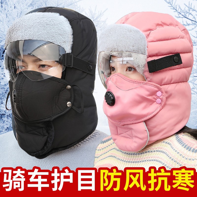 冬天保暖防寒眼镜雷锋帽户外骑车防风耳罩护脸棉头套护颈围脖一体