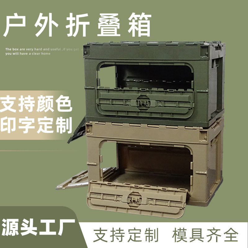 塑料折叠箱50L日式家居车载军绿侧开门整理箱户外露营箱