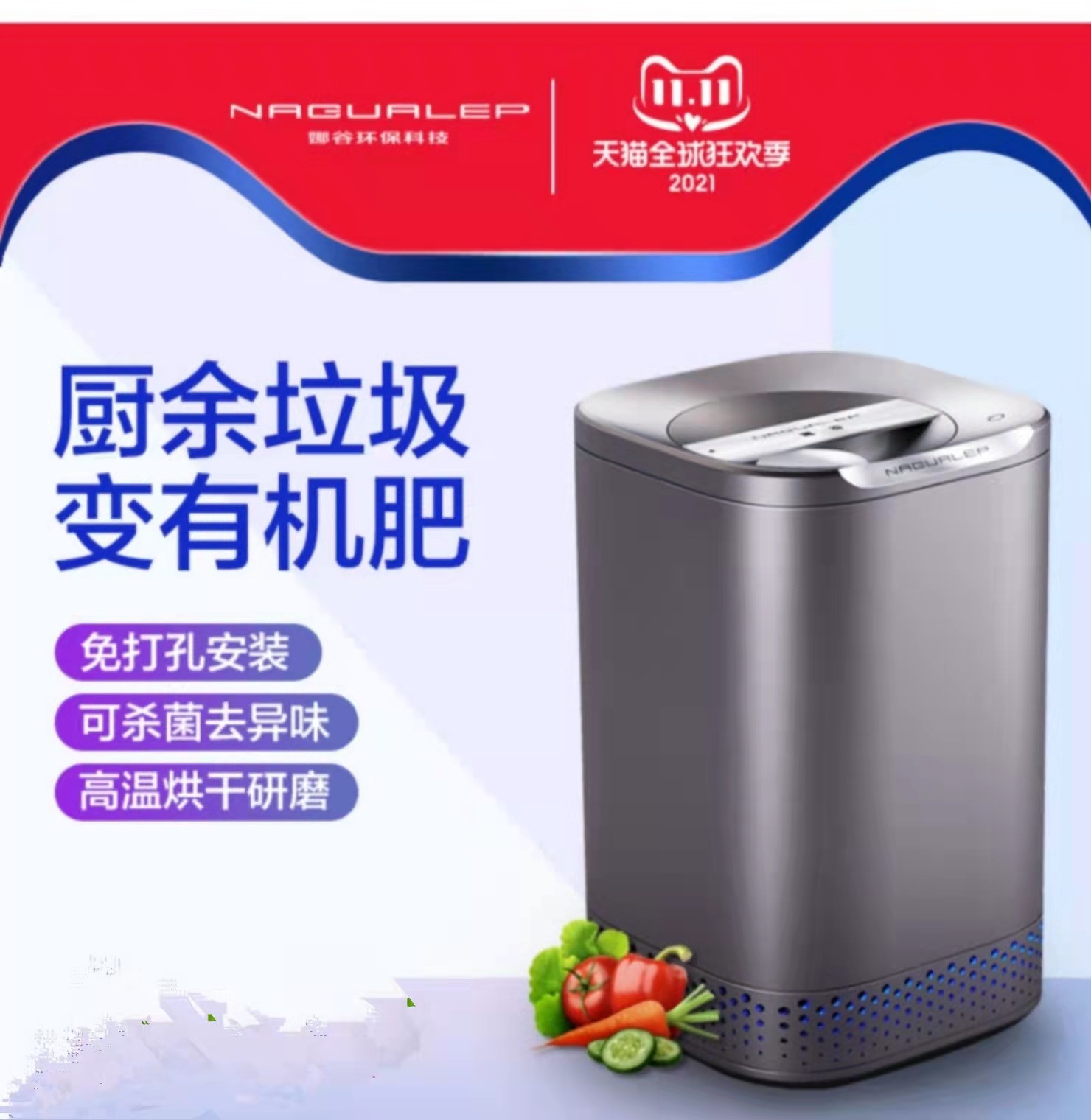 NAGUALEP新型家用厨余垃圾处理机食物垃圾处理器烘干厨余干湿垃圾