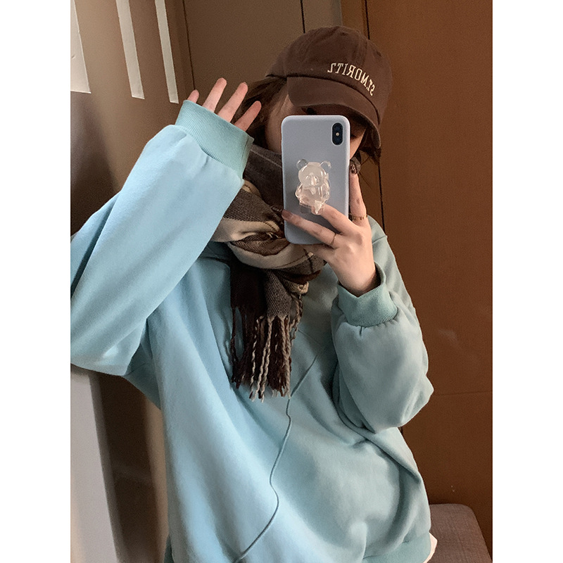 抖音热卖连帽卫衣女加绒加厚韩版宽松oversize套头衫秋冬季外套潮