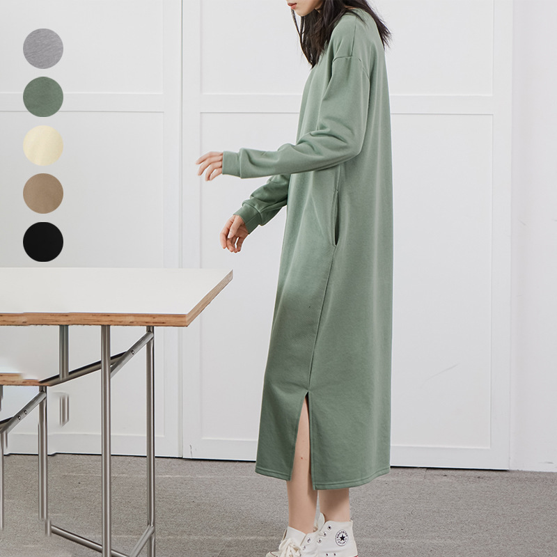 实拍 日本乐天高端棉质卫衣女2021秋冬新款气质打底休闲连衣裙子