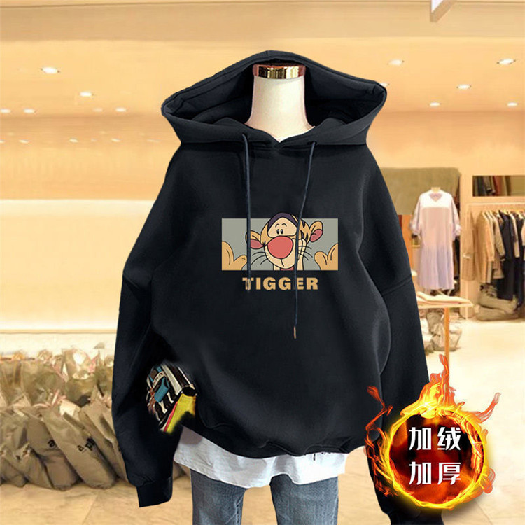 连帽卫衣女加绒加厚冬季2021年新款宽松大码女士中长款带帽外套女