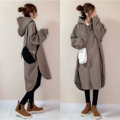 【超人気好評 急速出荷】日系 新商品 コート AWアウター 大きいサイズ トレンチコート ファスナー フード付き 長袖 カジュアル コート おしゃれ 高級感 春秋冬 ロング レディース コート レディ