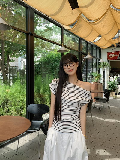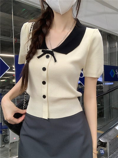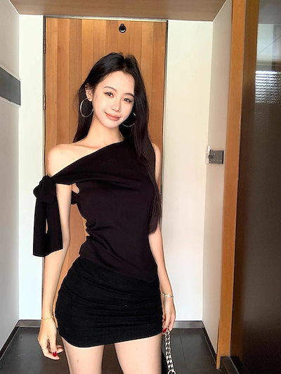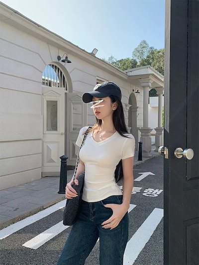 2025夏秋 Tシャツ ショート丈カットソーラウンドネックK-POPトップスカジュアル配色韓国系トレンドストリートへそ出しタイトVネックスリーブ 肌見せ T ファッションレディースかわいいサイド衣装風